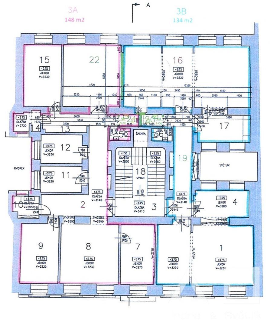 Dovolujeme si Vám nabídnout k pronájmu reprezentativní kancelářské prostory o výměře 134 m2 (v plánku prostor z označením 3B) ve 2. NP domu nacházejícího se nedaleko Václavského náměstí, avšak v klidné ulici Růžová. Nacházejí se zde 4 samostatné místnosti a 2x samostatné WC. Ke kanceláři náleží vlastní parkovací stání (4 500 Kč měsíčně). V okolí domu je veškerá občanská vybavenost, kterou nabízí centrum Prahy. Tramvajová zastávka Jindřišská je vzdálena cca 3 min chůze, zastávka metra Muzeum nebo Můstek ve vzdálenosti cca 5 min chůze.